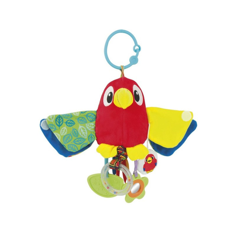 Pluszowa zabawka dzięki specjalnemu kółeczku niezwykle łatwa do przymocowania w łóżeczku czy wózku. Wibracja, którą słychać po pociągnięciu za sznurek uspokoi maluszka. Dodatkowo wyposażona w piszczek, grzechotkę, lusterko oraz gryzaczek. Mięciutka zabawka wykonana jest z wysokiej jakości materiałów.