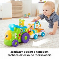 Interaktywny Pociąg Bebo firmy Fisher Price. Interaktywna zabawka Pociąg BeBo od Fisher-Price® z wesołymi postaciami na pokładzie zachęca dziecko do zabawy, nauki i raczkowania! Dołącz do BeBo, Belli i ich pieska. Twój mały konduktor naciska podświetlany komin, a pociąg rusza naprzód i odtwarza wesołą muzykę oraz wypowiedzi na temat alfabetu, kolorów, kształtów i nie tylko! Zabawka wykorzystuje też technologię