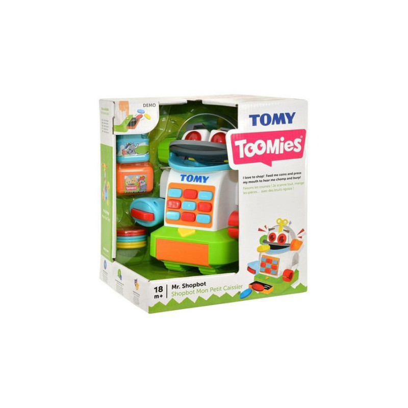 Zabawa w sklep z panem Robokasjerem dostarczy dużo radości każdemu dziecku. Przyłóż produkt do skanera Pana Robokasjera. Teraz trzeba za niego zapłacić, wrzucając pieniążki do otwartej buzi robota. Nie martw się gdy zapłacisz za dużo, wystarczy użyć żółtego trójkąta a robot wyda resztę, która wystrzeli z kasetki.Zabawka wykonana z bezpiecznych materiałów, wytrzymała i solidna.