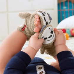 Stopy same w sobie są całkiem fajne, ale wszystko staje się jeszcze przyjemniejsze dzięki uroczym skarpetkom leniwca.Skarpetki Fisher-Price to miękkie, przenośne zabawki, które zachęcają dzieci do dotykania i odkrywania wszystkich tekstur, a kopiąc stopami wydają zabawne dźwięki.Elastyczne skarpetki dziecięce mają uroczą buzię leniwca, którą można złożyć, aby odsłonić słodkie dziecięce palce.