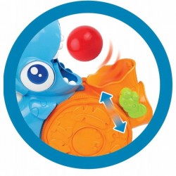 Dinozaur Pchacz potrafi strzelać kolorowymi piłeczkami i połykać je z powrotem do swojego brzuszka. Popchnij Dinozaura, z zabawki wyskoczy piłka, a Dinozaur złapie ją do otwartej mordki. Piłeczki mogą też wyskakiwać na zewnątrz. Gdy najedziesz zabawką na piłeczki, Dinozaur pozbiera je, aby można było rozpocząć zabawę od nowa!