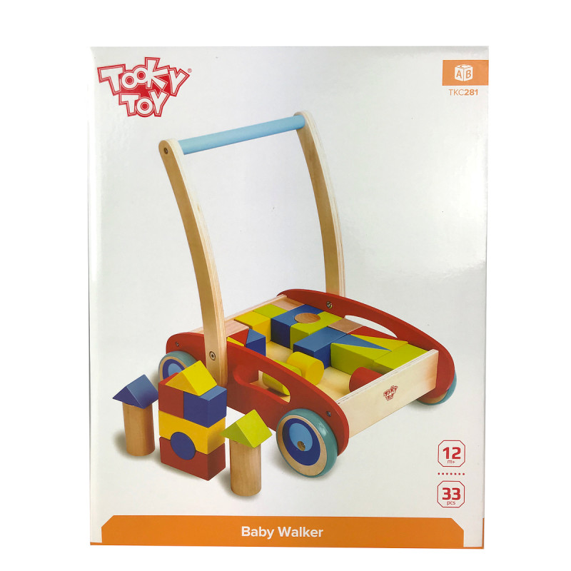 Wózek z Klockami inspiruje maluchy do aktywnej zabawy. Sprawdzi się również jako pchacz podczas pierwszych spacerów. Rączka umieszczona jest na takiej wysokości, aby ułatwić dziecku pchanie wózeczka. Pomaga utrzymać równowagę, przyspiesza naukę chodzenia.
