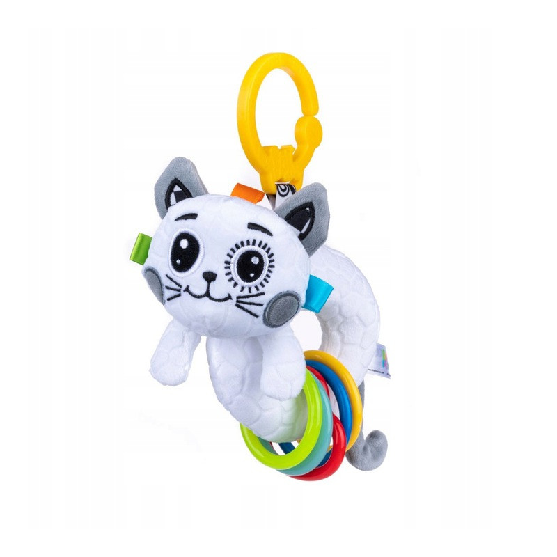 awieszka kot z grzechotką to miła przytulanka i pierwszy przyjaciel malucha. Można zabrać ją wszędzie ze sobą, a dzięki wygodnemu uchwytowi przymocować w wybranym miejscu.