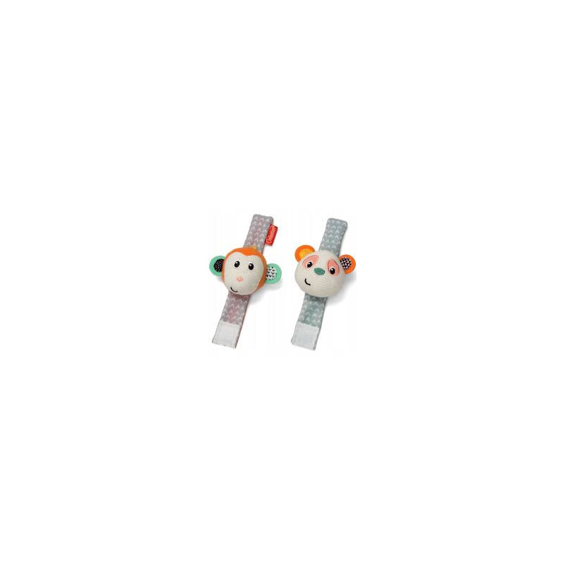 Grzechotki, które nie wymagają dodatkowego wysiłku od dziecka, bo będą grzechotać z każdym jego naturalnym ruchem! Miękkie grzechotki w kształcie zwierzątek są wygodne i lekkie, idealnie pasują do małych rączek. W zestawie 2 grzechotki: małpka i misiu zapinane na rzep. Zabawka stymuluje rozwój wzroku i koncentracji . Wiek 0+.