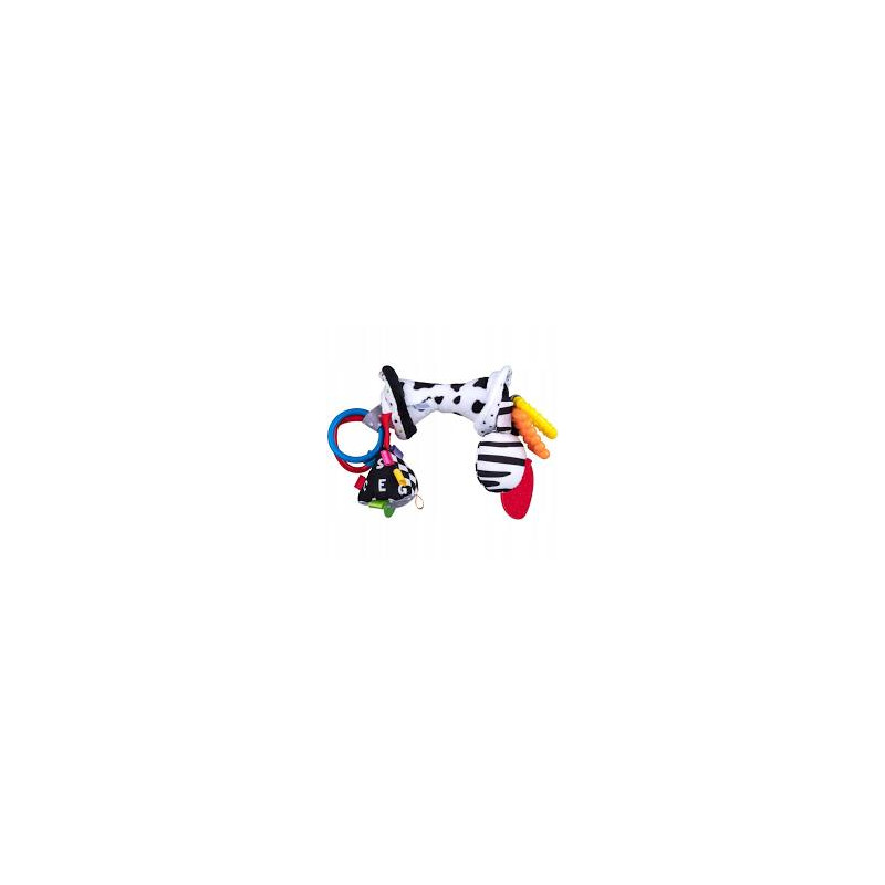 Fajna zabawka z serii sensorycznej, której kształt pasuje idealnie do małych rączek. Kryje się tu mnóstwo niespodzianek: kolorowe gryzaczki w soczystych kolorach, piszczałka, grzechotka i tasiemka do przeciągania zabawki w dwie strony. Zróżnicowane faktury materiałów pobudzają zmysły dotyku i wzroku dziecka, zachęcając je do odkrywania świata. Żywe kolory przyciągają wzrok maluszka.