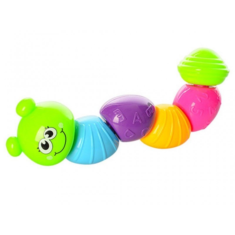 Gąsienica (16 cm) do przekręcania. Zabawka z odpinanymi elementami o różnych kolorach, wzorach i fakturach. Dostosowania do małych rączek dziecka, stymuluje zmysły wzroku i dotyku. Wykonana z bezpiecznych atestowanych materiałów.