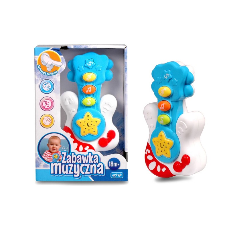 Muzyczna zabawka dla najmłodszych. Wygrywa wesołe melodie i wydaje zabawne dźwięki. Posiada efekty świetlne. Stymuluje zmysły: wzroku, słuchu dotyku. Dostosowana do małych rączek. W zestawie baterie testowe. Wiek 18m+.