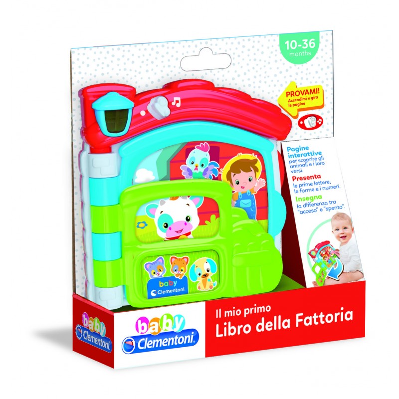 Przewracając strony i naciskając podświetlany przycisk na dachu farmy dziecko poznaje zwierzęta i ich odgłosy, odkrywa pierwsze litery, cyfry i kształty.