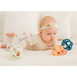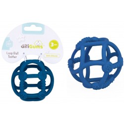 NIEBIESKI sensoryczny gryzak marki Giligums w kształcie piłeczki.