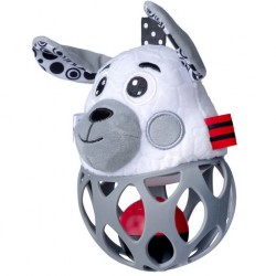 Sensoryczny piesek, który jest zarazem piłką i grzechotką.