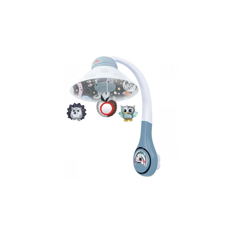-Przymocuj do łóżeczka jako karuzelę z projektorem z obracającymi się zwierzątkami leśnymi i lusterkiem w kształcie jabłka.