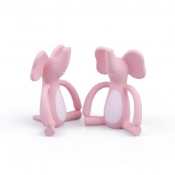 Wesoły słonik to zabawka i gryzak w jednym. Zwierzak posiada szeroko rozstawione łapy, ułatwiające małym rączkom chwytanie zabawki. Słoniowe uszy zdobią wypustki, które delikatnie masują dziąsła malucha, przynosząc mu ulgę w ząbkowaniu. Dodatkowo, słonik posiada otwór na palec, dzięki czemu gryzak może także pełnić funkcję pacynki do rozśmieszania dziecka i zabawy w teatrzyk. Wiek 3m+.