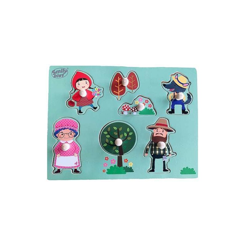 Drewniane puzzle można układać w specjalnie wyprofilowanych miejscach na przystosowanej do tego tablicy. Każdy element układanki posiada uchwyt, dzięki któremu dziecku łatwiej będzie układać puzzle. Układanka składa się z siedmiu puzzli i tablicy. Każdy element tablicy jest w innym kształcie i kolorze – puzzle prezentują bohaterów bajki „ Czerwony Kapturek” a tablica jest dla nich tłem i dopełnieniem obrazu.