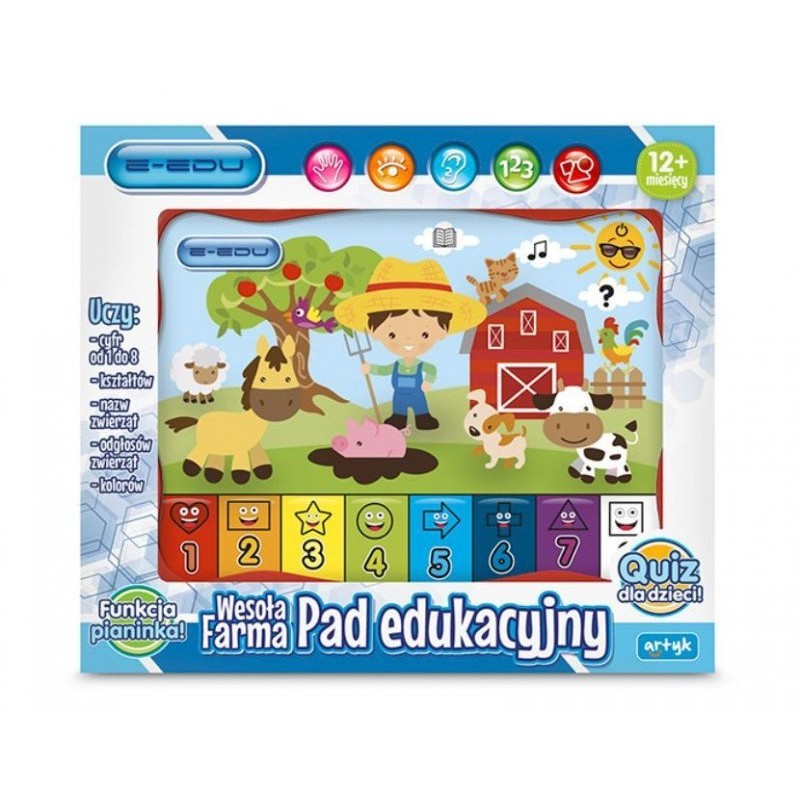 Wielofunkcyjny edukacyjny pad to idealna zabawka dla każdego maluszka. Wygodny, poręczny uchwyt i atrakcyjne funkcje sprawią, że zabawa stanie się dla brzdąca prawdziwą przyjemnością. Odkryj wszystkie funkcje tej radosnej zabawki. Uroczy pad-pianinko przeniesie każdego maluszka w magiczny świat muzyki, kolorów, dźwięków i przyjaznych zwierzątek które można spotkać na farmie.