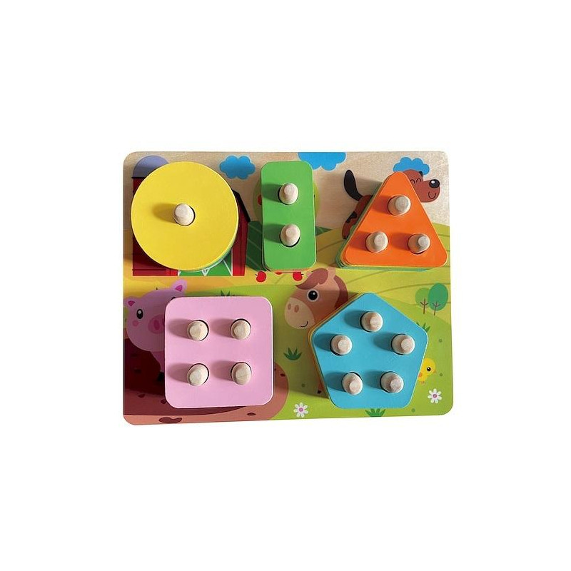 Układanka drewniana kształty z motywem wsi to doskonała zabawka edukacyjna,