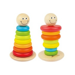 7 drewnianych, kolorowych krążków, stojak typu wańka - wstańka. Zabawa z piramidką rozwija umiejętności logicznego myślenia, koordynację ręka – oko, uczy rozpoznawania kolorów oraz pojęcia większy – mniejszy, można też nawlekać elementy na sznurówkę. Wiek 18 m+.