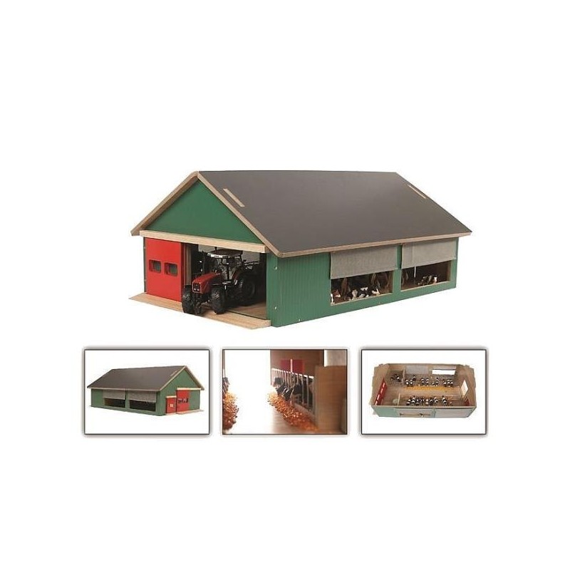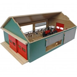 Drewniana stajnia pokryta zieloną farbą z szarym dachem, w której swój domek znajdzie mnóstwo zwierząt to idealny prezent dla każdego dziecka, które marzy o tym, aby mieć własne gospodarstwo, lub po prostu lubi życie na wsi. Zabawka ta jednak spodoba się każdemu, kto lubi bawić się zwierzątkami i odgrywać różnorodne scenki.