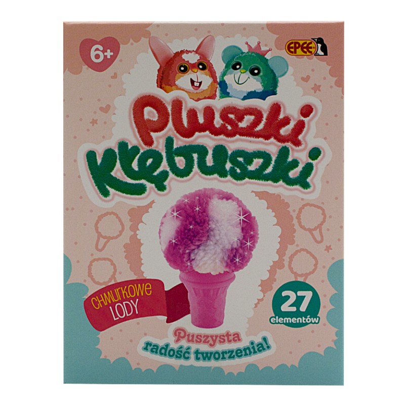 Zaprojektuj własną puchatą zabawkę! Zabawa, pozytywnie wpływa na rozwój dziecka: - pobudza wyobraźnię - rozwija kreatywne myślenie - rozwija zdolności manualne i myślenie przestrzenne - uczy cierpliwości - daje mnóstwo radości W świecie Pluszków-Kłębuszków każdy znajdzie coś dla siebie! Możesz stworzyć 8 różnych zwierzaczków i 4 różne desery - lody i muffinki! Przymocuj do porcji włóczki kawałek specjalnej taśmy z zestawu. Następnie przyklej porcję włóczki do korpusu swojego Pluszka i ściągnij z niej owijkę. Powtarzaj, aż do momentu, w którym zabawka będzie cała pokryta włóczką i gotowe!
