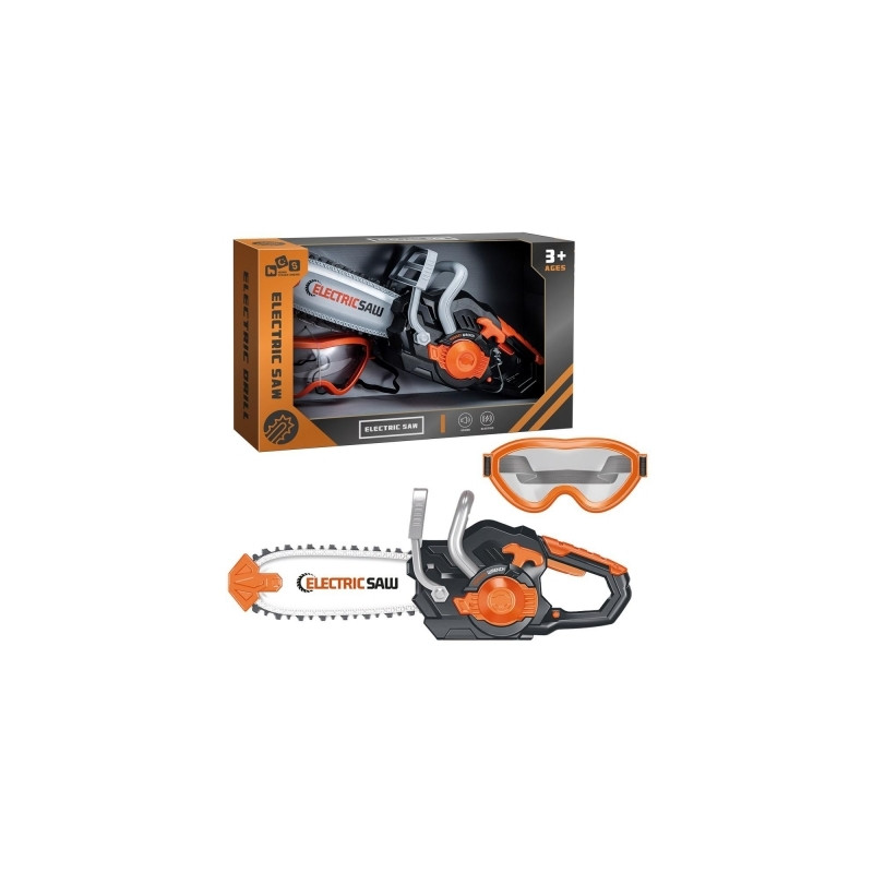 Prawdziwa maszyna dla małego majsterkowicza! Zestaw składa się z piły na baterie oraz okularów ochronnych.