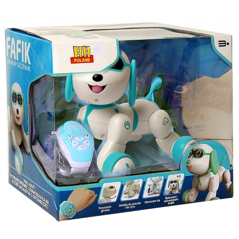 Fafik mówi, szczeka, śpiewa piosenki, opowiada bajki, tańczy, obraca głową, macha ogonkiem, jeździ w 4 kierunkach, szczeniaczka włączamy guziczkiem z tyłu głowy. Po włączeniu rozświetlą mu się jego oczy a szczeniaczek przemówi miłym ciepłym głosikiem: Cześć jestem Fafik, Twój inteligentny piesek pobawmy się razem. Potrafię śpiewać i znam kilka bajek, które chciałbym Ci opowiedzieć. Fafik zacznie obracać głową oraz jeździ w rytm muzyczki.