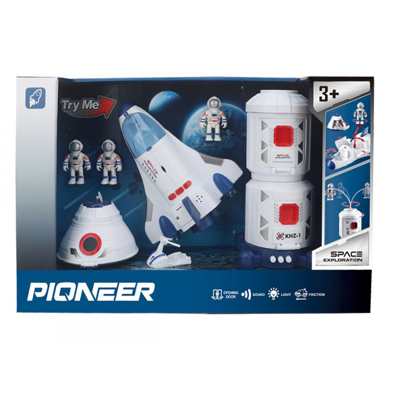 Zobacz ciekawy Świat Kosmosu, dzięki temu zestawowi . Po naciśnięciu jednego z 3 przycisków rakieta oraz kapsuła wydają dźwięki i świecą się światełka. Statek kosmiczny posiada napęd zamachowy, otwierany luk bagażowy ze specjalnym wysięgnikiem dla astronauty oraz trzy guziki odpowiadające za światła i dźwięki.