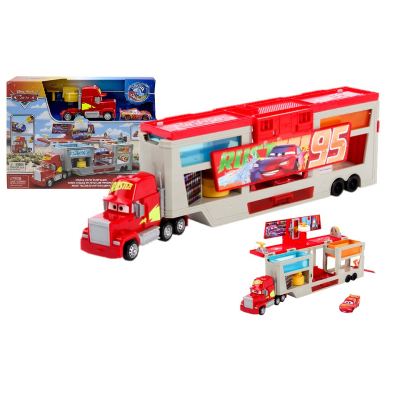 Super samochód z dwupoziomową przyczepą, który zaskoczy Cię odjazdowymi funkcjami. Duży transporter pozwoli ci zostać królem szos w wielkim stylu! Zabawę zacznij od spryskania auta Zygzak McQueen lodowatą wodą, aby sprezentować mu nowy lakier. Wybierz się windą na stanowisko do przeglądu i zakręć polerką, by wypolerować auto na błysk. Zanurz pojazd zmieniający kolor w zbiorniku pełnym ciepłej wody, aby przywrócić mu pierwotny wygląd. A potem zacznij zabawę od nowa!