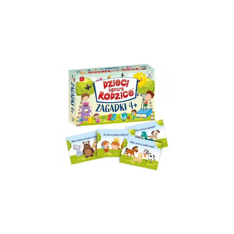 W zestawie znajduje się aż 100 kolorowych zagadek przeznaczonych dla dzieci już od czwartego roku życia. Nie musisz martwić się, że Twoja pociecha nie potrafi jeszcze czytać. Odpowiedzi na pytania występują w postaci rysunkowej, dlatego nawet najmłodsi gracze bez trudu poradzą sobie w zabawie. Na czym polega gra "Dzieci kontra rodzice. Zagadki 4+"? Poza oczywistym celem, jakim jest fantastyczna zabawa, chodzi o to, aby dzieci udzieliły jak największej liczby prawidłowych odpowiedzi. Pytania dotyczą najróżniejszych aspektów życia zarówno ludzi, jak i zwierząt, a ich poziom dopasowany jest do wiedzy maluchów w wieku przedszkolnym. Taka wspólna zabawa to doskonały sposób, by razem spędzić czas i zadbać o relację z dzieckiem. Sukcesy podczas gry z pewnością wpłyną pozytywnie na samopoczucie Twojej pociechy, jednocześnie zachęcając ją do dalszego zdobywania wiedzy. Seria "Dzieci kontra rodzice" to różnego rodzaju zestawy gier i quizów dla całej rodziny. Wraz z rozwojem malucha można zatem sięgać po kolejne propozycje, które sprawią, że wspólnie spędzony czas będzie jeszcze bardziej atrakcyjny. Taka aktywność to doskonała zabawa, a jednocześnie wspaniały sposób na odkrywanie świata.