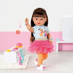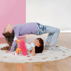 „Kiedy dorosnę, chcę zostać tancerką. A może wspinacz na drzewa?” Najnowsza Siostrzyczka uwielbia przybierać zabawne pozy i wykonywać ekstrawaganckie ruchy. Od ruchomej głowy po stawy barkowe i łokciowe, górną częścią ciała może wykonywać bardzo wyraziste gesty. Jej elastyczne biodra potrafią się kołysać, dzięki czemu może wykonywać ruchy taneczne. Taniec z pewnością byłby dla niej karierą zawodową, a dzięki elastycznym kolanom mogłaby także jeździć konną czy na rowerze. Siostra potrafi nawet stać sama. Dzięki delikatnej skórze dziewczynka uwielbia kąpać się i stylizować swoje długie włosy, a dzięki temu że ma taki sam rozmiar jak młodsza BABY Born niemowlę, obie lalki mogą korzystać z wspólnej kolekcji ubranek.