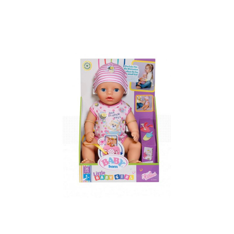 Lalka ma 7 funkcji, które działają bez baterii. Ma wszystko, czego potrzebuje. Może pić wodę z butelki, zmieniać pieluchę lub korzystać ze swojego różowego nocnika. Kiedy otrzymuje smoczek przymocowany do ciała, jej oczy magicznie się otwierają lub zamykają. Jeśli dasz jej smoczek i obrócisz go w lewo, zamknie oczy; jeśli obrócisz go w prawo, otworzy oczy. Jeśli położysz ją spać w łóżeczku, zamknie oczy nawet bez smoczka. Jej ramiona, nogi i głowa są superzwrotne i sprawiają, że ubieranie i rozbieranie dziecka jest zabawą. Mając 36 cm, nadaje się do rączek mniejszych dzieci od pierwszego roku życia i jest idealną lalką do rozpoczęcia zabawy.