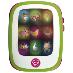 Edukacyjny tablet Baby Tab, który posiada 5 dydaktycznych funkcji. Dzięki aktywnościom, dzieci poznają zwierzęta i mogą bawić się z grami świetlnymi i melodyjkami.