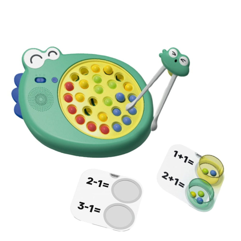 Zestaw zawiera 27 kolorowych kulek, szczypce, 2 kubeczki oraz karty pracy