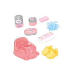 - różnorodne akcesoria (takie jak prysznic, pieluszki, kosmetyki i myjka, nocnik)