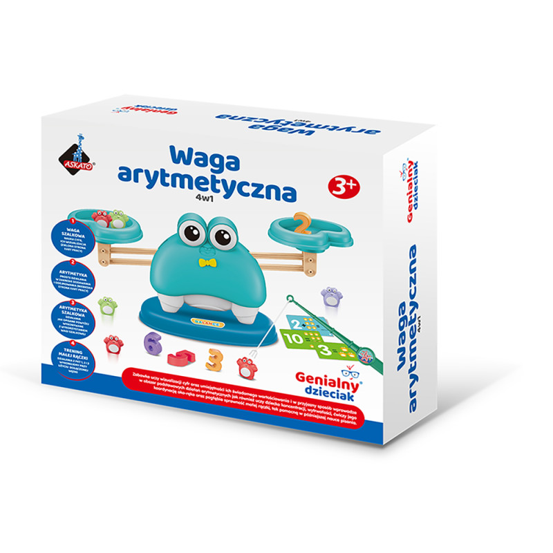 Zabawka, która uczy wizualizacji cyfr oraz umiejętności ich świadomego wartościowania. W przyjazny sposób wprowadza dziecko w obszar podstawowych działań arytmetycznych, jak również uczy koncentracji, wytrwałości, ćwiczy koordynację oko - ręka oraz pogłębia sprawność małej rączki (dołączona wędka z magnesem).