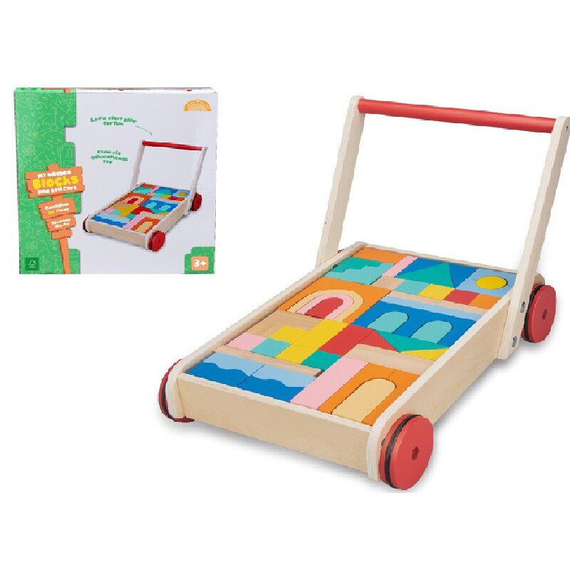 ICOM 11275 DREWNIANY WÓZEK Z KLOCKAMI
