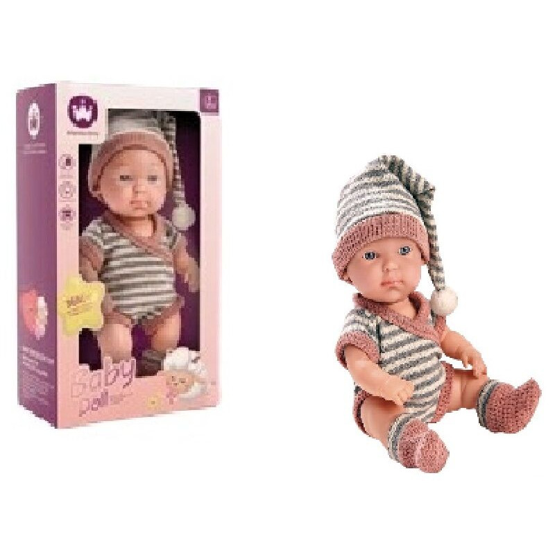 Śliczna lalka – bobas ubrana w ładne body, czapeczkę i skarpety.