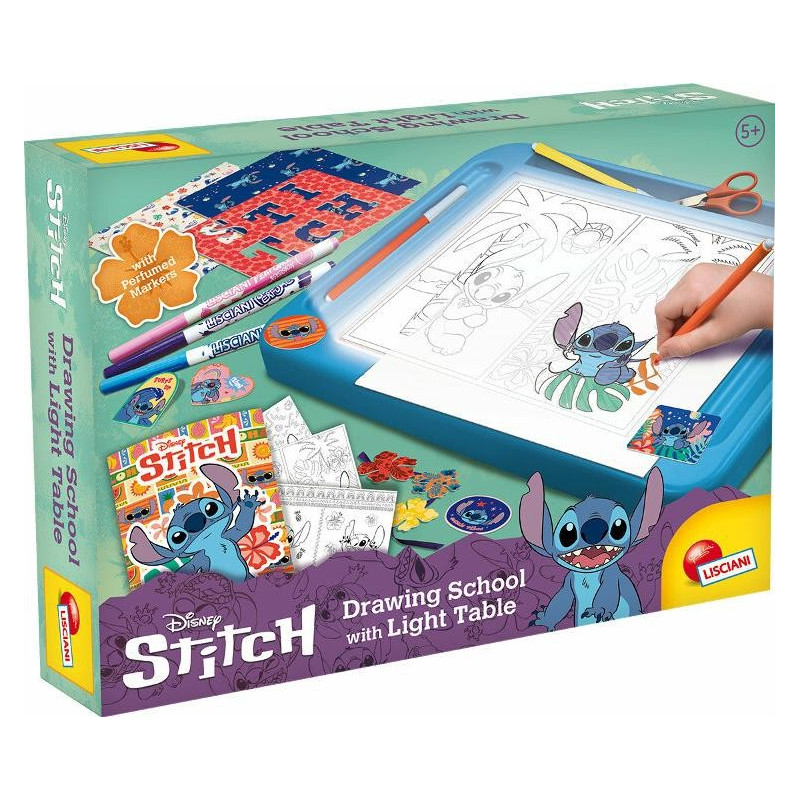 Szkoła rysowania to kolorowy i pełen radości zestaw, który wspiera rozwój zdolności manualnych i artystycznych dziecka oraz pobudza jego wyobraźnię i kreatywność. Dzięki podświetlanej tablicy LED rysowanie i odtwarzanie postaci z filmu Disneya staje się wyjątkowo proste i przyjemne. W zestawie, oprócz świecącego stolika, znajdują się także szablony, naklejki oraz pachnące pisaki, które pozwalają ozdobić zarówno stolik, jak i wszystkie prace w stylu Stitcha. Gotowe rysunki można przechowywać w dołączonej teczce i realizować ciekawe, kreatywne zadania zaproponowane w instrukcji.