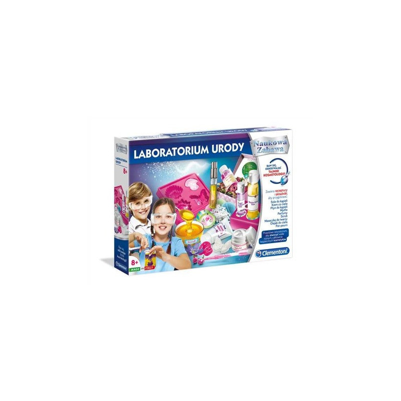 Laboratorium urody firmy Clementoni. Stwórz własne, bezpieczne kosmetyki. Zestaw zawiera wszystkie elementy, składniki oraz formuły wprowadzające dziecko do nauki o kosmetykach. Zawiera również ilustrowaną instrukcję. Wiek 8+