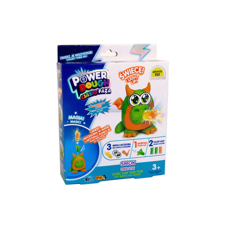 Ciastofaza Zestaw startowy firmy Epee. Figurki z masy plastycznej ożyją na Twoich oczach, wystarczy że włożysz do masy bateryjkę a będzie ona świecić. Zestaw zawiera 3 akcesoria, 2 kolory masy oraz bateryjkę.