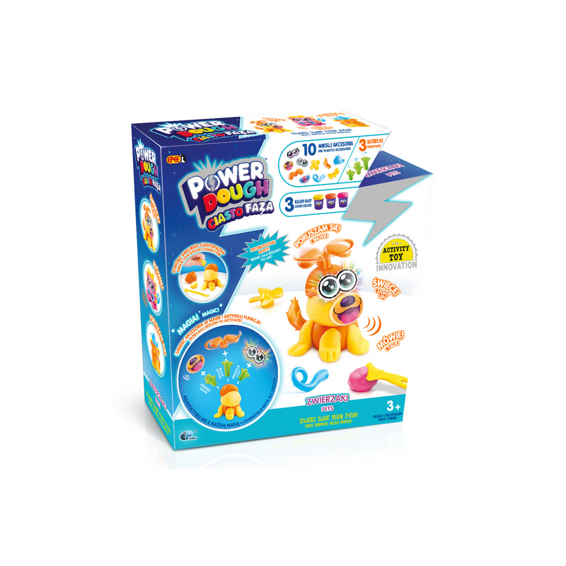 Ciastofaza Mega zestaw z 3 motorkami firmy Epee. Figurki z masy plastycznej ożyją na Twoich oczach, porusza się, mówi i świeci, wystarczy że włożysz do masy bateryjkę. Zestaw zawiera 10 akcesoriów, 3 kolory masy oraz 3 bateryjki. Wiek 3+