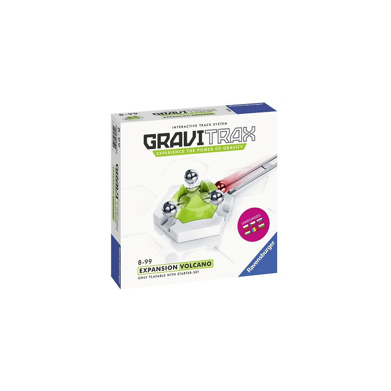 Gravitrax Zestaw uzupełniający Wulkan firmy Ravensburger. Zestaw uzupełniający składający się z wielu elementów pozwoli na rozbudowanie toru podstawowego. Zestaw pomaga w nauce pojęć grawitacji, magnetyzmu, energii ruchu oraz dziedzin matematyki i inżynierii.