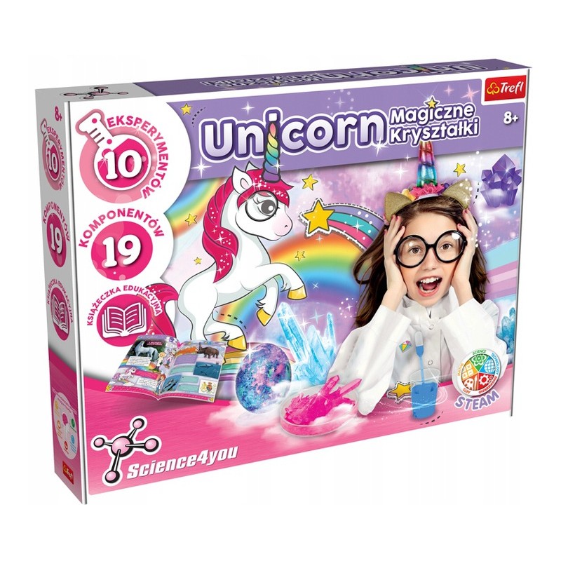 Wykonaj wiele ciekawych kryształowych doświadczeń. Czy wiesz, że kryształy powstają z soli albo z cukru? Dowiedz się więcej z zestawem naukowym Unicorn Magiczne Kryształki od S4Y. Do wykonania 10 eksperymentów. W zestawie: naklejki, książeczka edukacyjna, akcesoria potrzebne do wykonania eksperymentów. Zestaw rozwinie ciekawość świata i poszerzy wiedzę dziecka.