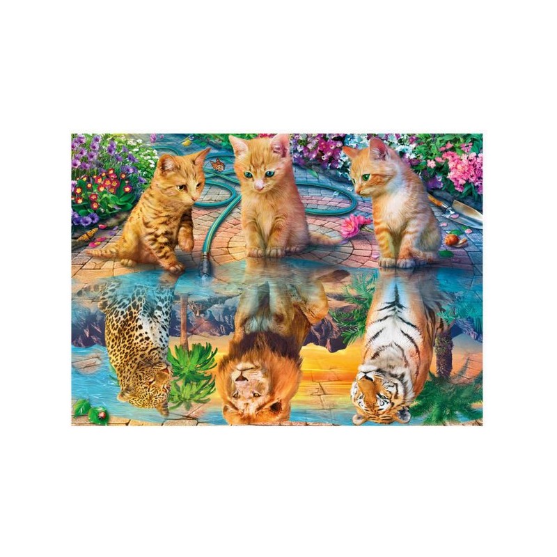 Tu zakupisz obrazek przedstawiający koty i ich odbicia o wymiarach 40 na 30 cm.