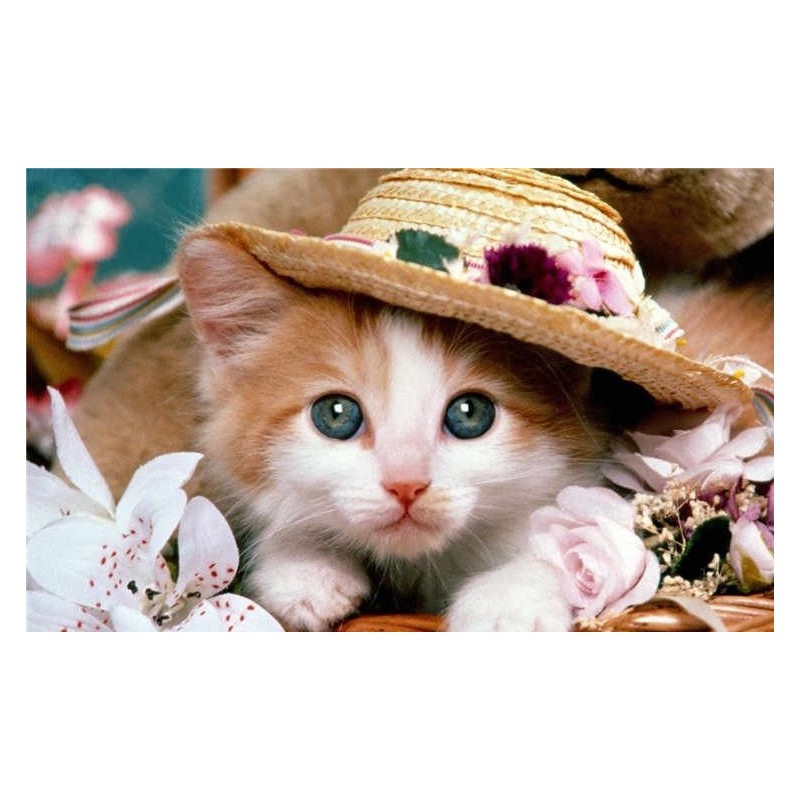 Tu zakupisz obrazek przedstawiający kota w kapeluszu o wymiarach 40 na 30 cm.