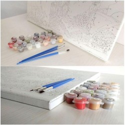 Malowanie po numerach to zestaw, w którym obraz jest podzielony na segmenty z liczbami, nadrukowane na płótnie. Każdy jest oznaczony liczbą odpowiadającą określonemu kolorowi.