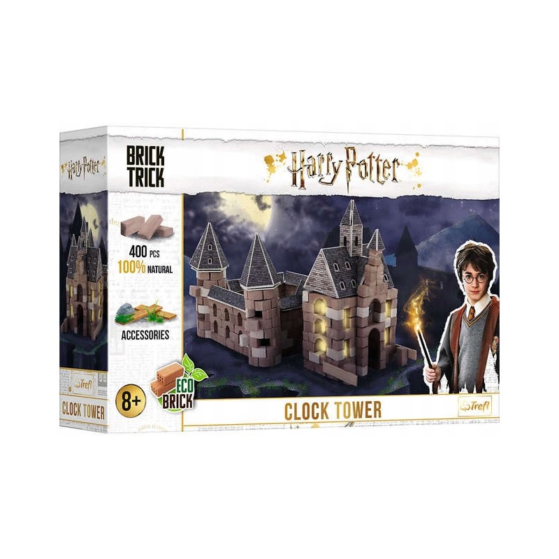 Zbuduj jedną z najstarszych wież w Szkole Magii i Czarodziejstwa – Wieżę Zegarową. Podczas zabawy produktami Brick Trick z serii Harry Potter poznasz od fundamentów Szkołę Magii i Czarodziejstwa! I co najważniejsze - Wieżę Zegarową możesz ustawić na półce z zabawkami. Wykorzystaj naturalne, wypalane w temperaturze 1000 stopni Celsjusza cegły oraz prawdziwe drewno. Użyj tekturowych elementów dekoracyjnych aby złożyć dach, zegar czy okna. Dodaj trawę, prawdziwy mech i kamienie, aby nadać Szkole Magii i Czarodziejstwa w Hogwarcie niepowtarzalny klimat! Zbuduj od podstaw m.in. Wielką Salę, Wieżę Zegarową, Długą Galerię czy Wieżę Wielkich Schodów, na której szczycie znajdują się trzy wieżyczki, a w jednej z nich gabinet dyrektora Hogwartu…Specjalny klej rozpuszcza się w wodzie, co zapewnia możliwość wielokrotnej zabawy, dodatkowo działa szybko, a do połączenia elementów wystarczy tylko 1 kropelka! W sprzedaży dostępne również dodatkowe opakowania cegieł — refile oraz klej. Zabawka, która rozwija: