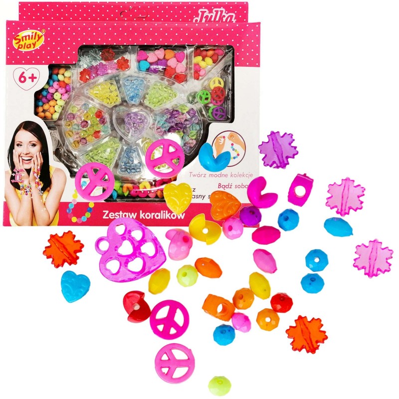 Zestaw zawiera aż 15 różnych grup koralików oraz żyłki do tworzenia bransoletek. Koraliki są wielokolorowe, mają różne kształty, dzięki czemu nigdy się nie znudzą.