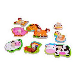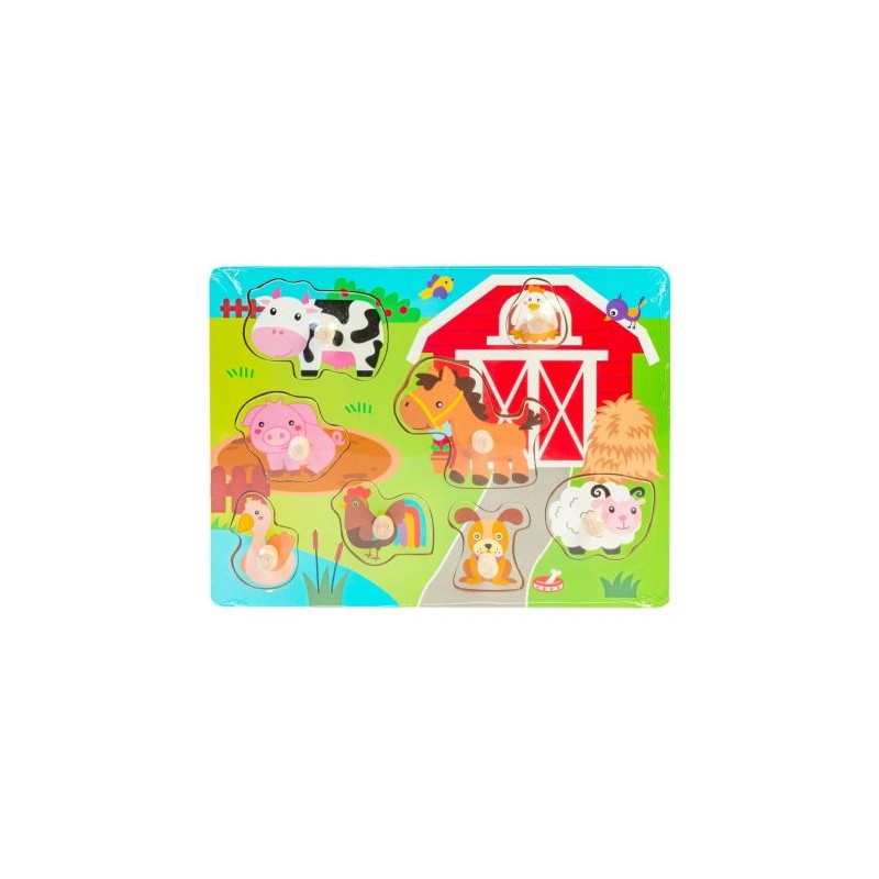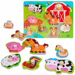 Zestaw składa się z 8 elementów - puzzli z wizerunkami zwierzątek z farmy.