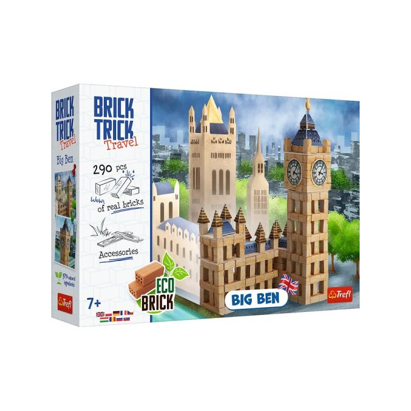 Wybuduj najbardziej rozpoznawalny symbol Wielkiej Brytanii - Big Ben, wykorzystując prawdziwe cegły i elementy dekoracyjne. Dzięki produktom z serii Brick Trick Travel poznasz niektóre z popularnych i lubianych zabytków, a co najważniejsze - zyskasz możliwość zbudowania ich od podstaw. Teraz najsłynniejsze historyczne budynki z każdego zakątka świata, możesz wystawić na swojej półce! Skorzystaj z dołączonych planów budowy lub użyj wyobraźni do stworzenia niepowtarzalnej konstrukcji.