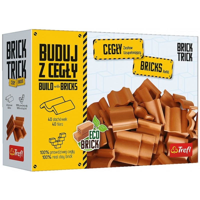 Zestaw uzupełniający cegły dachówki 40 szt pochodzi z serii Brick Trick, umożliwia budowanie modeli budynków przy użyciu prawdziwych cegiełek, drewna, specjalnego kleju i elementów dekoracyjnych. Konstrukcję można rozpuścić w wodzie i zacząć zabawę od nowa. Wiek 6+.