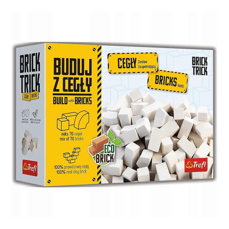 Zestaw uzupełniający cegły zamkowe białe 70 szt pochodzi z serii Brick Trick, umożliwia budowanie modeli budynków przy użyciu prawdziwych cegiełek, drewna, specjalnego kleju i elementów dekoracyjnych. Konstrukcję można rozpuścić w wodzie i zacząć zabawę od nowa.